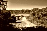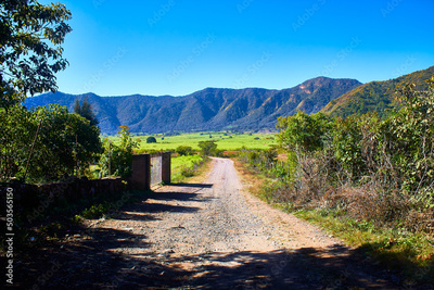 rural way in a volcano crater with mountains in the background and green grass around of field of corns in tepetiltic nayarit