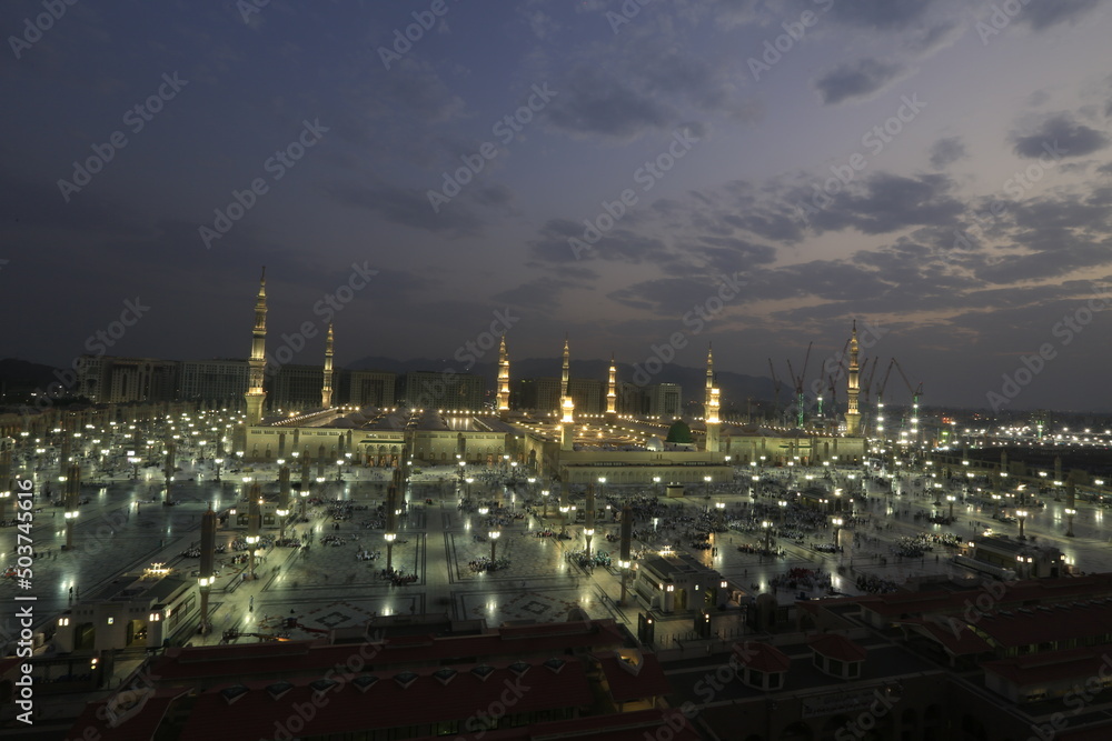 Al Masjid an Nabawi mosque beatuful sunset cloudy - Medina Saudi Arabia