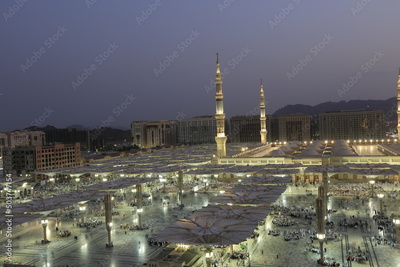 Al Masjid an Nabawi mosque beatuful sunset cloudy - Medina Saudi Arabia