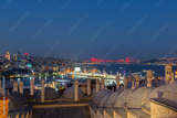 View of old Suleymaniye Bath Roofs and Bosphorus Strait