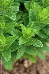 Close-up of green Mint or Peppermint plants in the vegetable garden. Mentha piperita