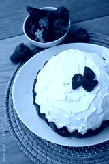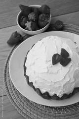 Zuccotto, traditional italian dome shaped cake with white chocolate cream and strawberries on wooden table. Charlotte cake with strawberries