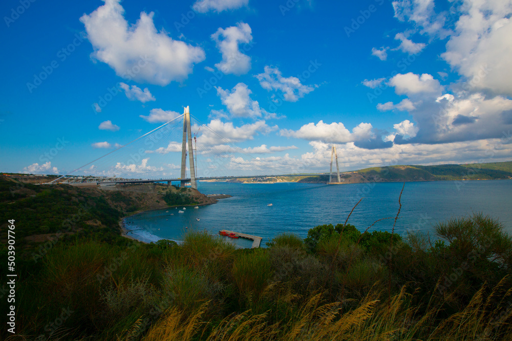 Yavuz Sultan Selim Bridge over the Bosphorus strait in Northern Istanbul, Turkey