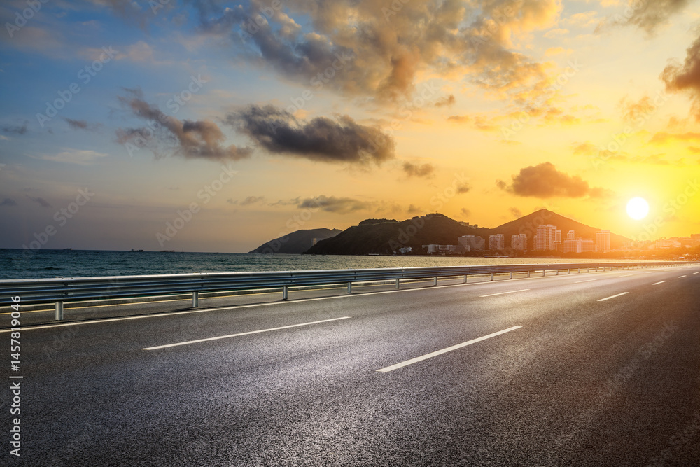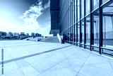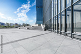 Empty square floor and city skyline with modern commercial buildings in Shanghai, China.
