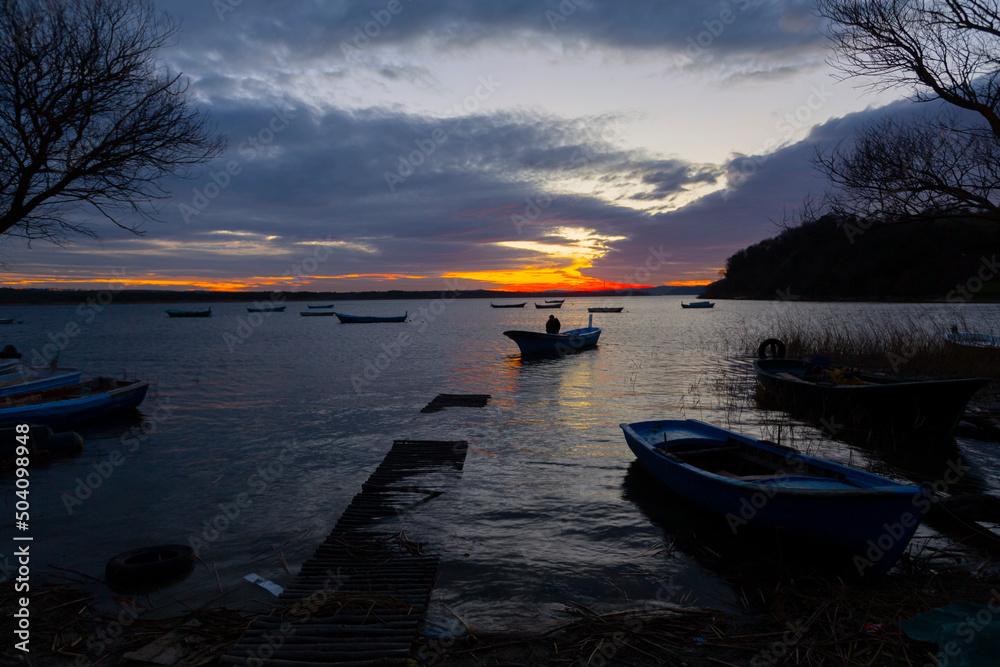 Fisher boat back to Van port. Van Lake has special fish, Alburnus tarichi,Turkey.