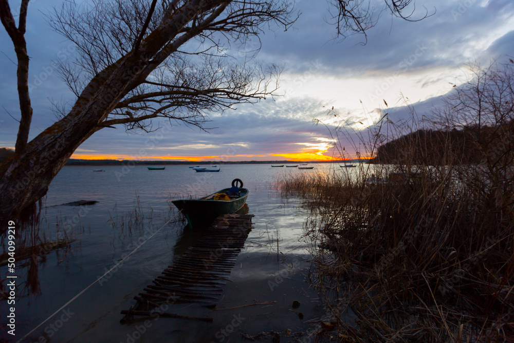 Fisher boat back to Van port. Van Lake has special fish, Alburnus tarichi,Turkey.