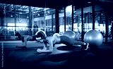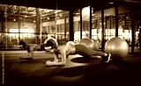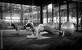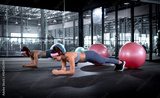 Sport fitness woman wearing sportwear with headband doing Pilates exercise her pelvis with fit ball at gym is individual sport to fit muscles of body for healthy life concept.