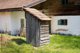 Wooden farmhouse in Bavaria with many details from the roof to wooden windows and doors