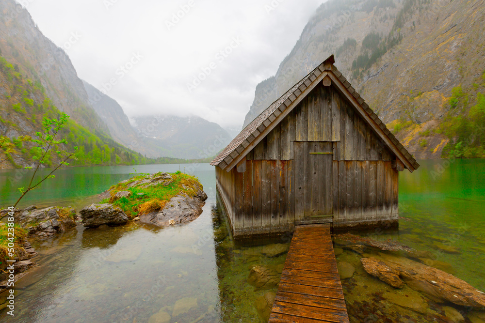 Schonau am Konigsee, Germany. Obersee lake in Berchtesgadener National Park. Watzmann mountain in the background.