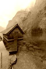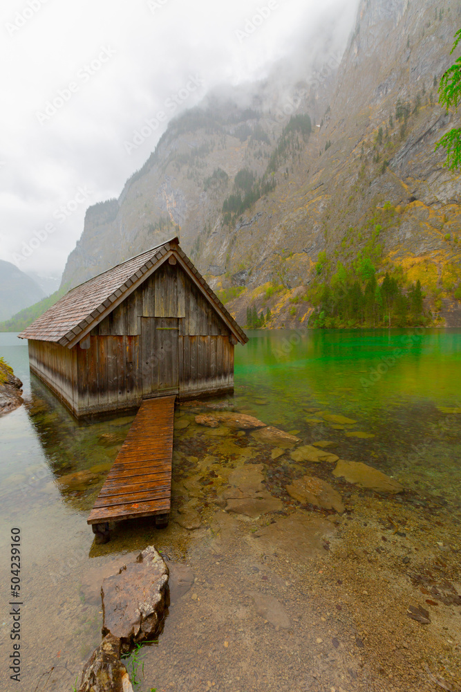 Schonau am Konigsee, Germany. Obersee lake in Berchtesgadener National Park. Watzmann mountain in the background.