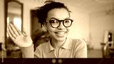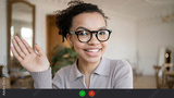 Woman with glasses chat message video call online screen