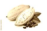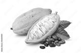 Yellow cocoa pods with half sliced and beans isolated on white background.