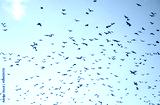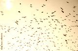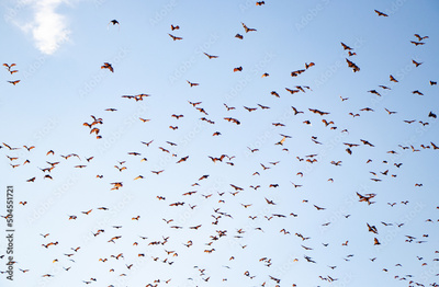 Giant fruit bats in flight at sunset - Subic Bay, Luzon, Philippines