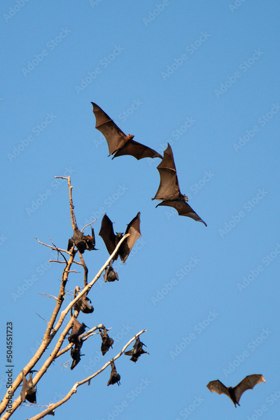 Giant fruit bats in flight at sunset - Subic Bay, Luzon, Philippines