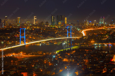 15th July Martyrs Bridge (15 Temmuz Sehitler Koprusu). Istanbul Bosphorus Bridge at night. Istanbul, Turkey.