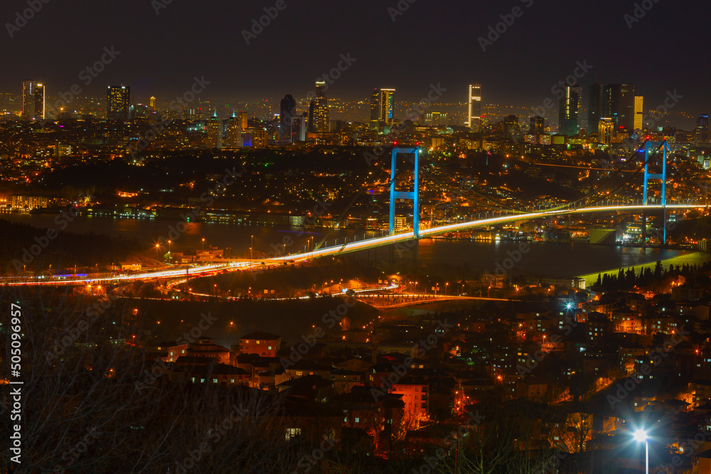 15th July Martyrs Bridge (15 Temmuz Sehitler Koprusu). Istanbul Bosphorus Bridge at night. Istanbul, Turkey.