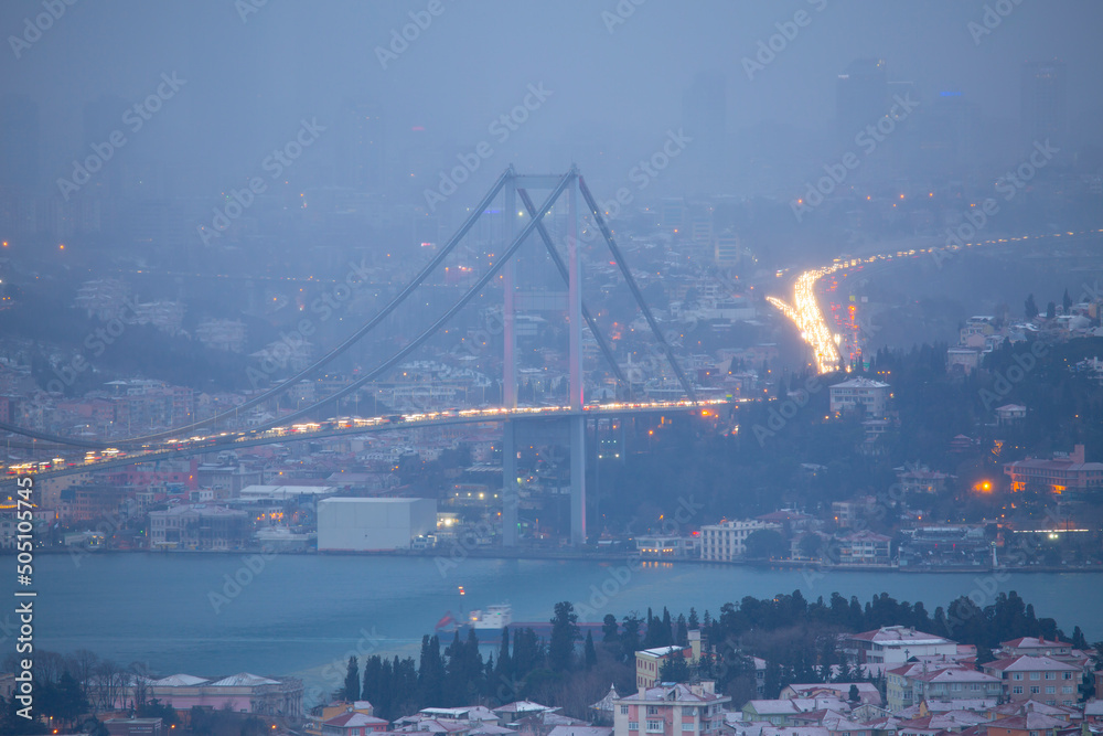The most beautiful view of Istanbul in winter months 15 July Martyrs Bridge (Bosphorus Bridge) And the Marmara Sea