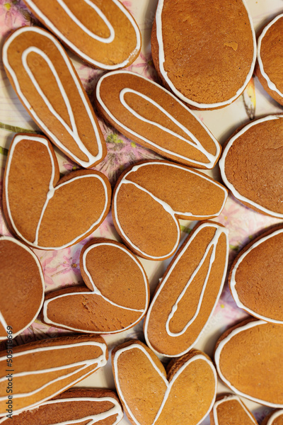 Ginger dough in the form of eggs, rabbit, angel, on the table. Blank for cookies, the concept of preparation for Easter.