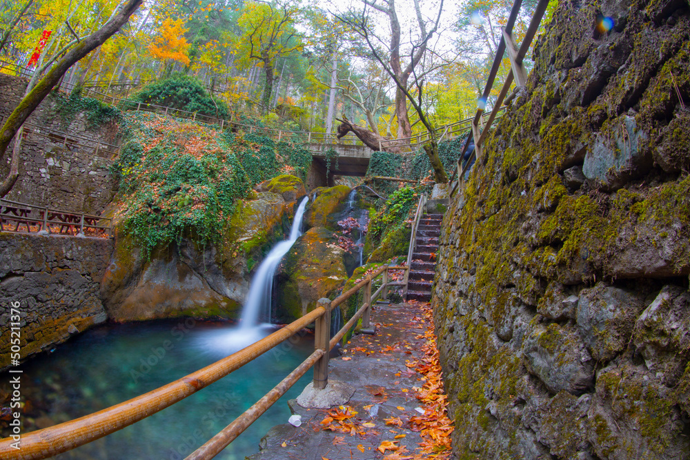 Ayazma National Park in Ida Mountains and streams flowing under the bridge