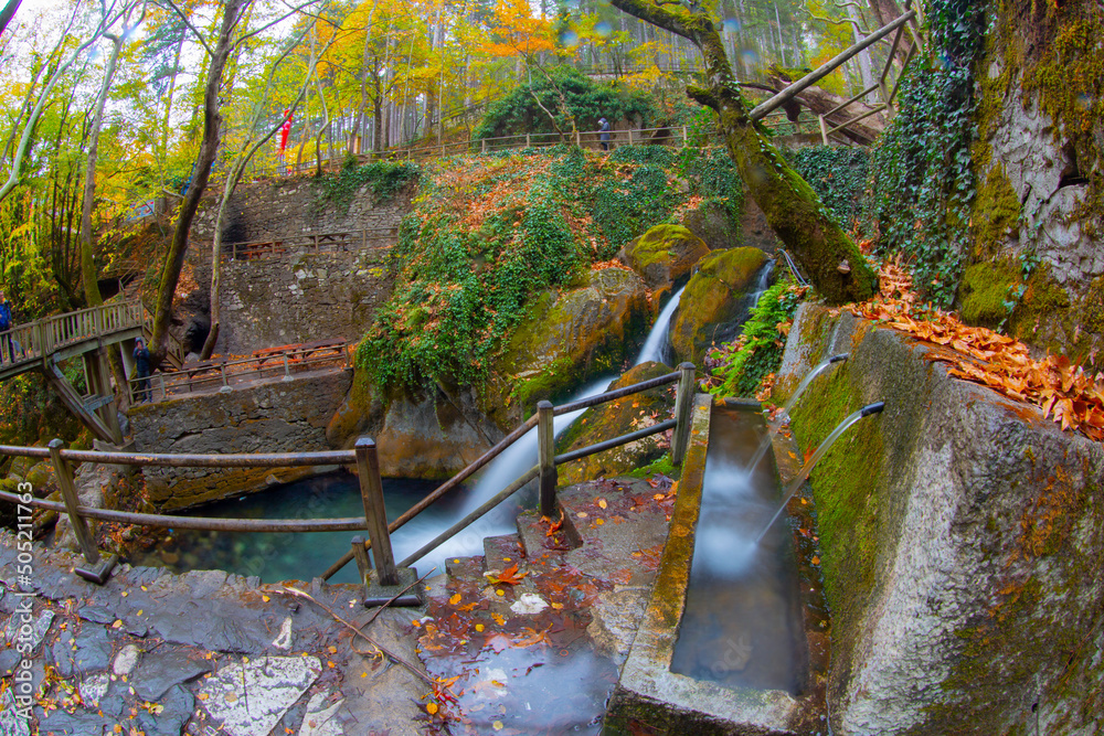 Ayazma National Park in Ida Mountains and streams flowing under the bridge