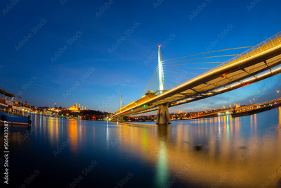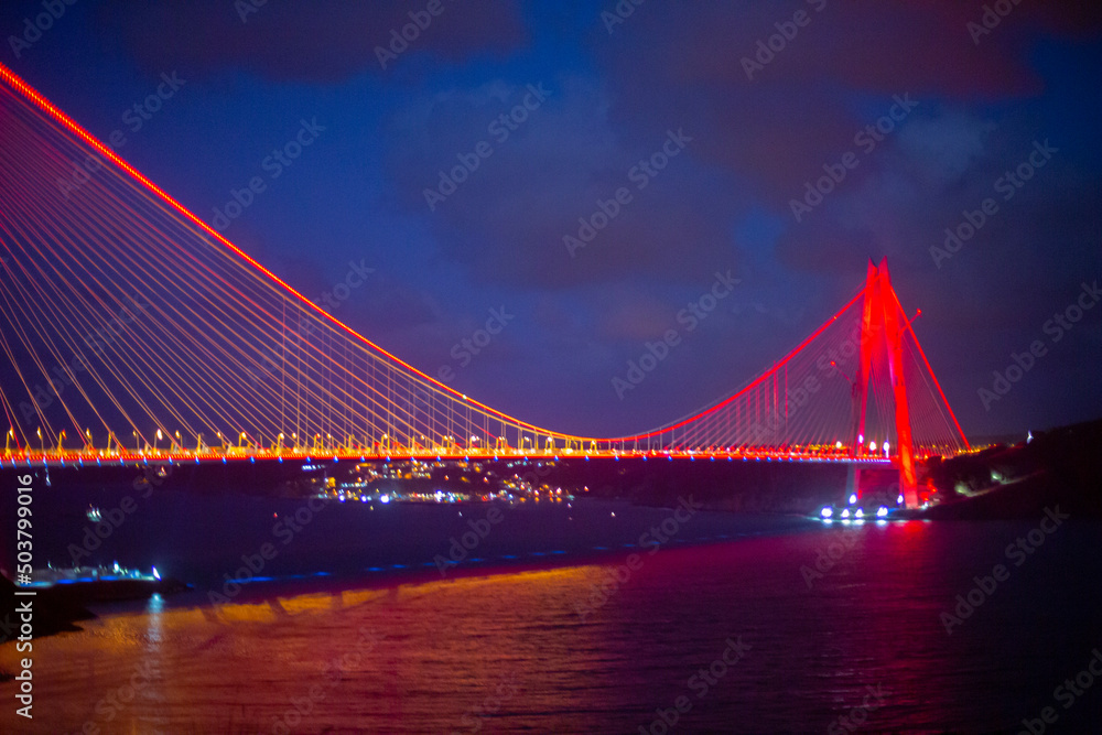 Halic Metro Bridge And Golden Horn At Night, Istanbul, Turkey
