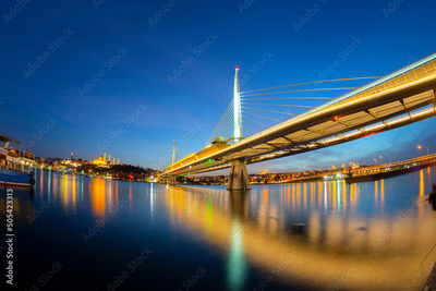 Halic Metro Bridge And Golden Horn At Night, Istanbul, Turkey