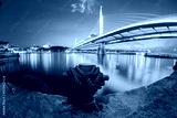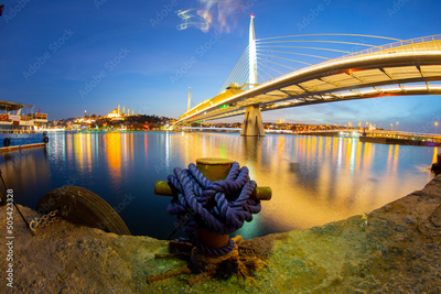 Halic Metro Bridge And Golden Horn At Night, Istanbul, Turkey