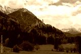 Beautiful view of world-famous Neuschwanstein Castle, the nineteenth-century Romanesque Revival palace built for King Ludwig II on a rugged cliff near Fussen, southwest Bavaria, Germany.