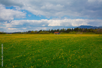 Chapel at Hegratsrieder See lake on an autumn morning, Ostallgäu, Bavaria, Germany