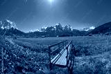 Sunrise view on Bernese range above Bachalpsee lake. Peaks Eiger, Jungfrau, Faulhorn in famous location in Switzerland alps, Grindelwald valley