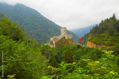 Zilkale castle view in summer day. Historical Zilkale Castle located in Çamlıhemşin district of Rize. Turkey Trip. Camlihemsin, Turkey