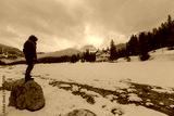 Panoramic afternoon view of the Misurina Lake (Lago di Misurina) that belongs to the National Park Tre Cime in the Dolomites. The lake is located in Auronzo di Cadore, Belluno, Italy.