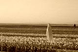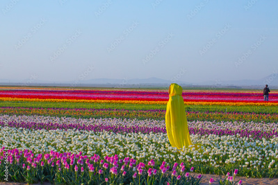A magical landscape with blue sky over tulip field
