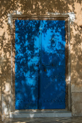 Doha, Qatar, May 5,2022: Traditional Arabian building built of wood and mud decorated with a facade in the traditional Arabic style.