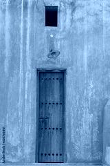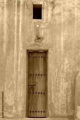Doha, Qatar, May 5,2022: Traditional Arabian building built of wood and mud decorated with a facade in the traditional Arabic style.