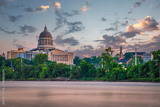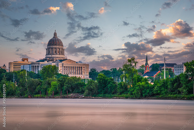 Jefferson City, Missouri, USA downtown view on the Missouri River with the State Capitol