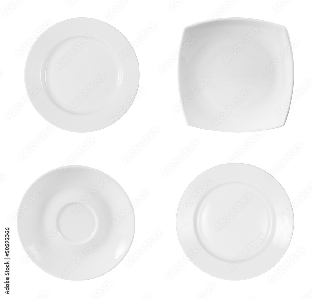 different plates isolated on white background with clipping path
