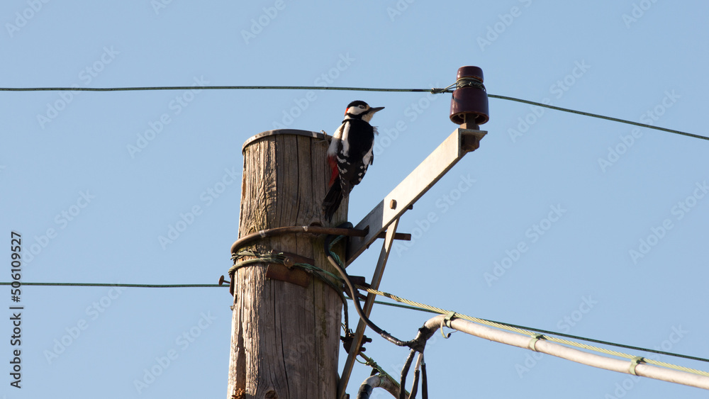 woodpecker on electric pole