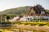 View of Ho Kham Royal Pavilion an iconic symbol of Royal Park Rajapruek in Chiang Mai province of Thailand.