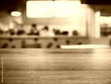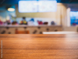 Table top wooden counter Cafe Restaurant Interior Blur background