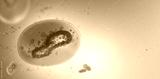 Monkeypox background. Monkeypox bacteria is variant of smallpox. Penetration monkey fever into human blood. Mutated fever monkey. Copy space near Monkeypox bacteria. Influenza virus cells. 3d image