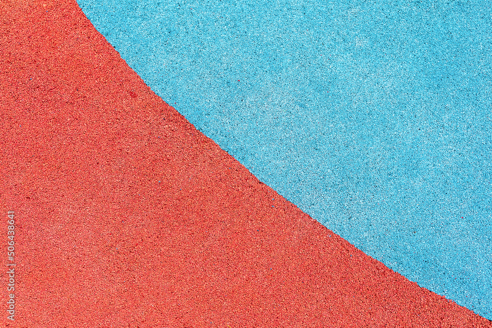 The connection of two parts of the floor covering of different colors. Soft floor covering with rubber granules. Special rubber coating for children's playground or sports.