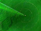 Aerial View from a Drone of a Farm Field of Crops Green Grown with Pivot Sprinklers