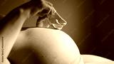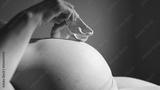 happy pregnant woman. booties baby shoes on the belly of a pregnant woman. pregnancy health procreation concept. close-up belly of a pregnant woman. indoor woman waiting for a newborn baby