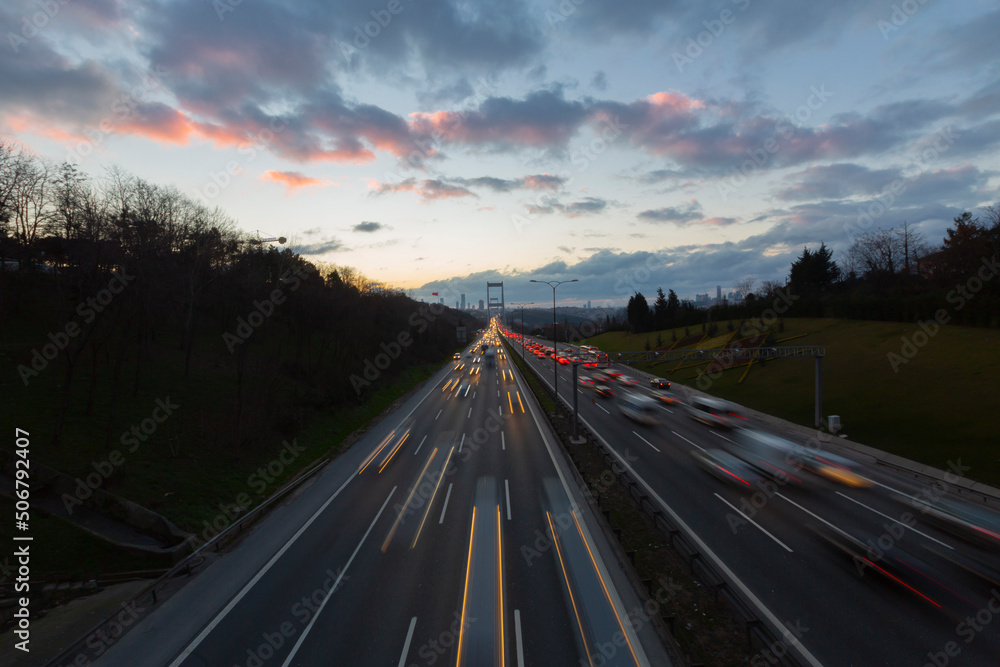 Istanbul Bosphorus Bridge at night. 15th July Martyrs Bridge (15 Temmuz Sehitler Koprusu). Istanbul, Turkey.