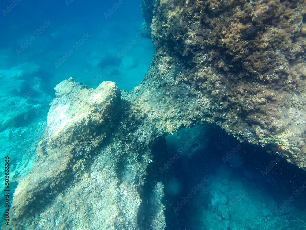 Underwater landscape with fishes and wildlife in the Adriatic Sea of Salento, Apulia Italy