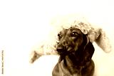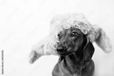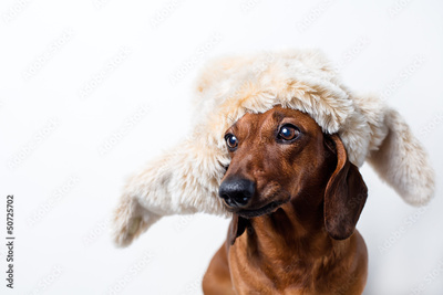 Dog in fur hat