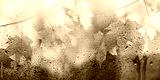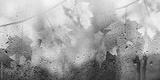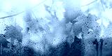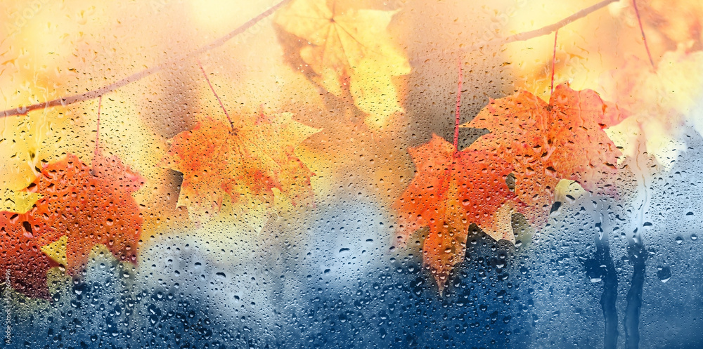 autumn bright abstract natural background. autumn orange maple leaves behind rain glass texture. concept of fall season. rainy day weather. banner