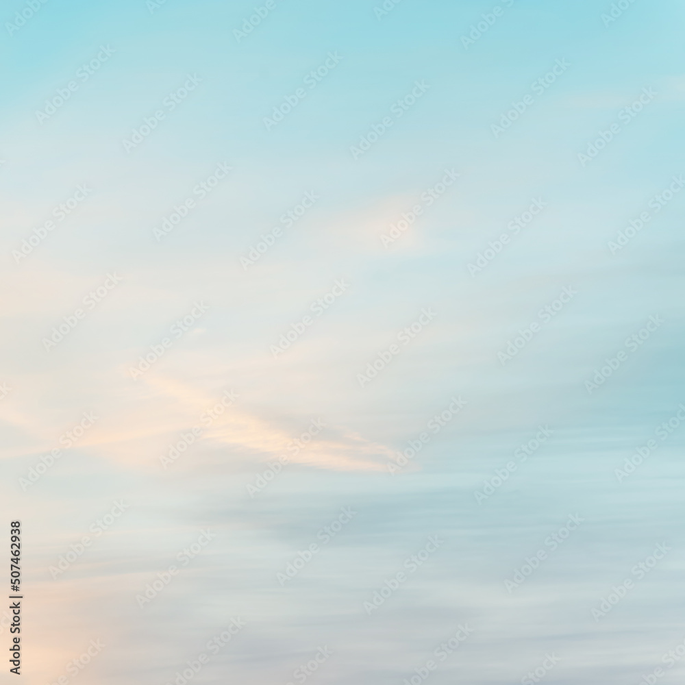 sunset background. sky with soft and blur pastel colored clouds. gradient cloud on the beach resort. nature. sunrise. peaceful morning. Instagram toned style