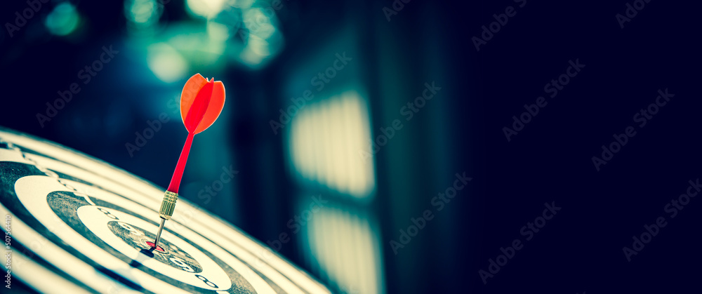 Bullseye or Bulls eye target or dartboard has dart arrow throw hitting the center of a shooting for financial business targeting planning and aim to winner goal of business concept.